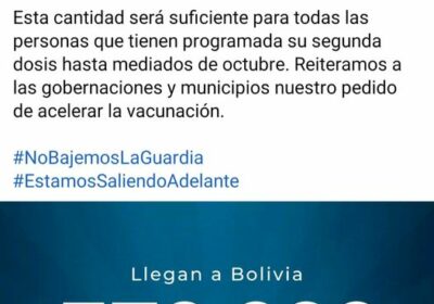 El presidente Luis Arce confirma la llegada de 370 mil segundas dosis de la vacuna #Sputni… 09/09/2021
