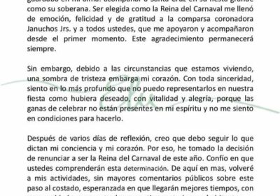 #LoÚltimo La reina del carnaval 2023, Elu González, renuncia a su reinado como reina del Carnaval Cruceño porque «las g 21/01/2023