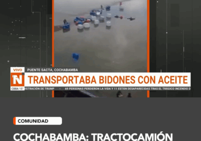 | Un tractocamión que transportaba bidones de aceite se precipitó al río en el puente Sacta, en el trópico de Cochabam… 18/07/2025