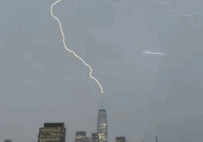 Un rayo impactó el One World Trade Center en Manhattan, Nueva York, durante una fuerte tormenta ocurrida el lunes 14 de… 16/07/2025