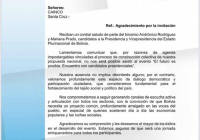 Andrónico y Mariana declinan participar en el foro de candidatos de la CAINCO. “Por razone 15/07/2025