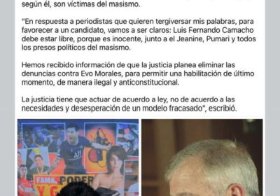 Branko le pide a Pomacusi no tergiversar sus palabras, “nunca hable de Camacho” Branko Marinkovic, jefe de campaña dep… 15/07/2025