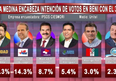 Samuel ocupa el primer lugar en Beni con 32.3%, le sigue Tuto con 14.3% Beni es otro de los departamentos que tiene en … 14/07/2025