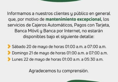 En horas de la madrugada de este sábado, domingo y lunes, Banco Mercantil Santa Cruz no te 19/05/2023