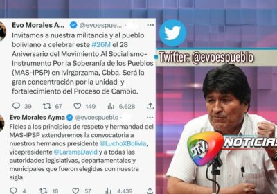 Evo Morales, ratifica en su ceunta en twitter invitación al presidente del Estado Plurinacional Luis Arce al acto de cel 09/03/2023