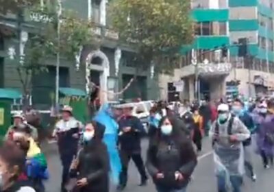 Magisterio urbano marcha por el centro paceño exigiendo atención a sus demandas, mayor presupuesto para educación, rechazó a la malla curricular, evaluación a la ley Avelino Siñani 09/03/2023