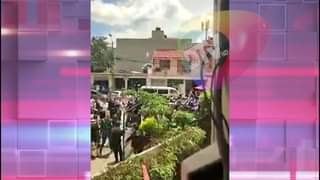 Alcalde cruceño Jhonny Fernandez, fuertemente custodiado, le hecharon agua, lanzaron botella y era abucheado, saliendo de la Gobernación. 09/03/2023