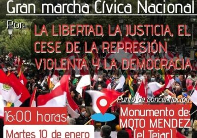 ¡Tarija se une a la Gran Marcha Civica Nacional! Este martes 10 de enero a las 16:00 hrs … 09/01/2023