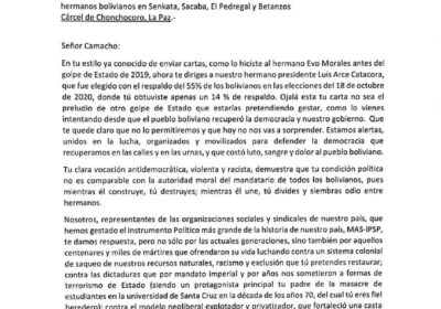 Organizaciones sociales le envían una carta al Gobernador Luis Fernando Camacho y lo acusa… 07/01/2023