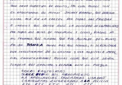 Pumari a través de una carta señala que «el Gobernador de Potosí, Jhonny Mamani, debería e… 16/01/2023