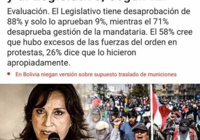 El 71% de los peruanos desaprueba lo que hace la presidenta Dina Boluarte.