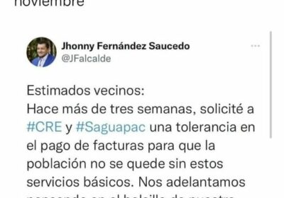 Concejal Manuel Saavedra pide al alcalde Jhonny Fernández predicar con el ejemplo y no cobrar tasa de alumbrado público y aseo urbano del mes de noviembre por el paro indefinido en 25/11/2022