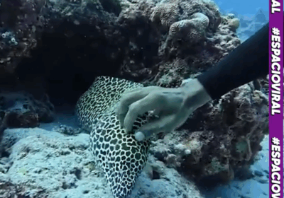 Se trata de una anguilla morena moteada (pez de cuerpo alargado) que se la encuentra en los arrecifes de coral del Atlá… 14/06/2025