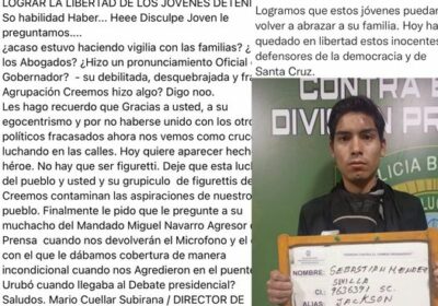 Director de “Noticias Villanas” reclama al Gobernador de #SantaCruz querer atribuirse la libertad de jóvenes detenidos y le pide que no se haga el héroe y que no sea “figuretti”. 16/11/2022