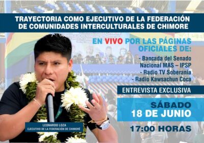 Hoy a horas 17:00, Leonardo Loza, Ejecutivo de la Federación de Comunidades Interculturales de #Chimoré, en su entrevist… 18/06/2022