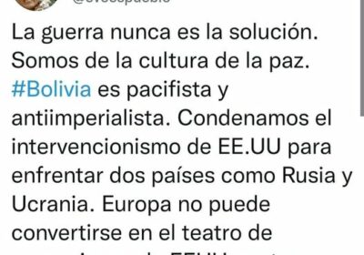 Mediante su cuenta de Twitter, el Ex presidente Evo Morales se pronuncia, «Condenamos el i… 24/02/2022