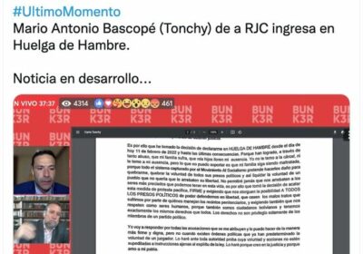 Mario Bascopé (Tonchy) de la RJC ingresa desde hoy en huelga de hambre