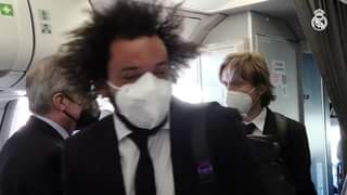 FLORENTINO PÉREZ SALUDA uno por uno a sus jugadores en el avión de camino a PARÍS.