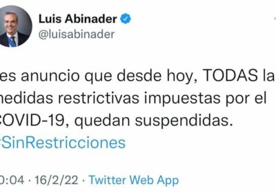República Dominicana levanta restricciones totales por COVID-19 Así lo anunció en twitter… 17/02/2022