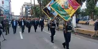 #Cochabamba Gobernador Humberto Sánchez participa de la iza de símbolos patrios en el municipio de Quillacollo. 14/02/2022