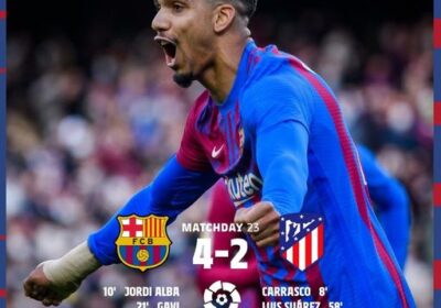 FC Barcelona 4-2 Atlético Madrid. Anotaron Jordi Alba, Gavi, Ronald Araujo y Dani Alves. … 06/02/2022