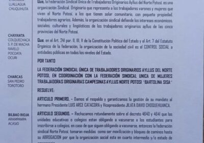 #Potosi La Federación de Campesinos del Norte de Potosí y Mujeres Campesinas Bartolina Sis… 06/02/2022