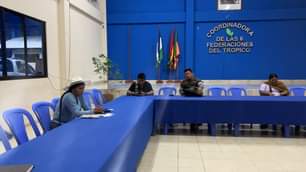 Dirigentes de las seis federaciones del trópico y autoridades municipales llegas a Lauca Ñ para sostener una reunión. 18/01/2022