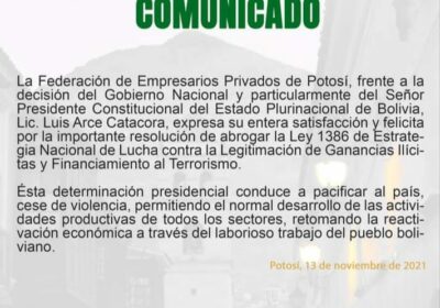 Arias felicita a cívicos, gremiales y transportistas por lograr anuncio de abrogación de la Ley 1386 14/11/2021