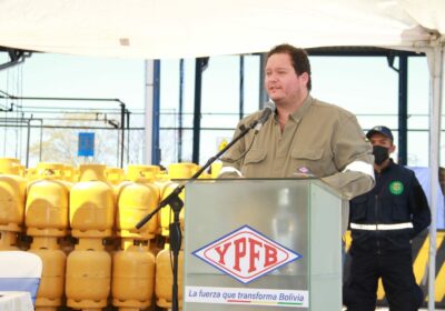 El ministro de Hidrocarburos y Energías, Franklin Molina y el presidente ejecutivo de YPFB, Armin Dorgathen Tapia, entregaron este martes 1.000 garrafas recalificadas a la Zona Comercial Bermejo 23/08/2022