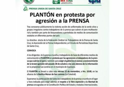 Periodistas de #SCZ anuncian #PLANTON en protesta por agresión a la prensa en el paro mult… 10/11/2021