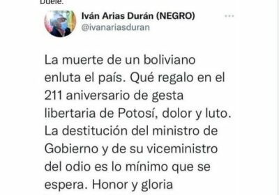 Tras muerte en Potosí, Arias dice que lo mínimo que se espera es la destitución del minist… 10/11/2021
