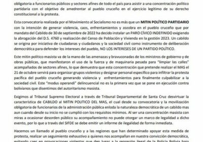 Cívico cruceño convoca a la población a salir a las calles en apoyo al PARO por el #Censo2… 21/10/2022