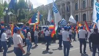 #LaPaz: «Guerreros Azules» marcharon en la Plaza Murillo en apoyo al Presidente Luis Arce … 18/10/2022