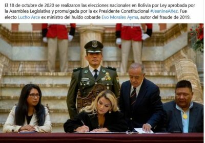 Añez recuerda que el 18 de octubre se realizaron las elecciones por la ley aprobada por la… 18/10/2022