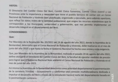 #Urgente #UltimoMomento: #Beni decreta paro cívico de 24 horas con bloqueo de carreteras … 18/10/2022