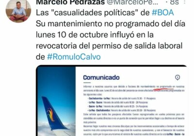 Diputado Pedrazas dice que mantenimiento «no programado» de BOA influyó en revocatoria del permiso laboral de Calvo 12/10/2022