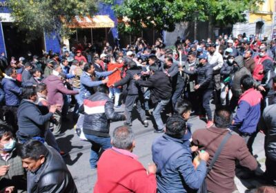 Choferes de #ElAlto y #LaPaz se enfrentan a golpes en la avenida 6 de agosto en predios de… 12/10/2022