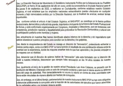 Ampliado del MAS pide destituir a Lima, Del Castillo y Henry Nina El Ampliado Nacional de… 06/10/2022