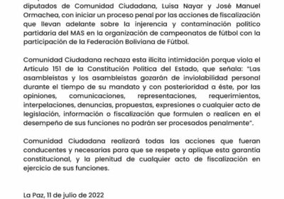 Camacho se envalentona y desafía al Ministerio Público (Convocatoria de Martes sigue firme… 11/07/2022