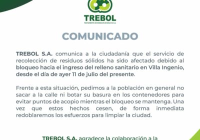 | La empresa Trebol comunica que su trabajo ha sido interrumpido debido a …