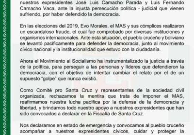 El Directorio del Comité pro Santa Cruz expresó su respaldo y apoyo a José …