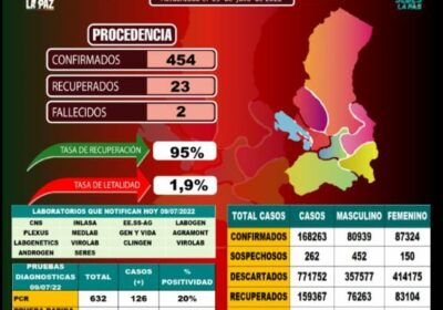 El Sedes #LaPaz reporta hoy 454 nuevos contagios de Covid-19 y dos decesos….