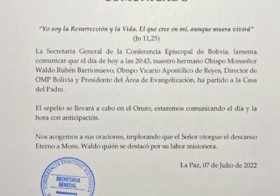 #Ultimo | La Conferencia Episcopal Boliviana (CEB) comunica sobre el fallecimi…