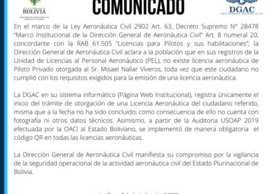 | La Dirección General de Aeronáutica Civil (DGAC), mediante un comunicado…