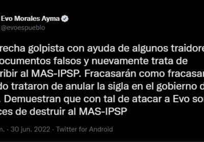 | El expresidente Evo Morales asegura que «la derecha y algunos traidores …