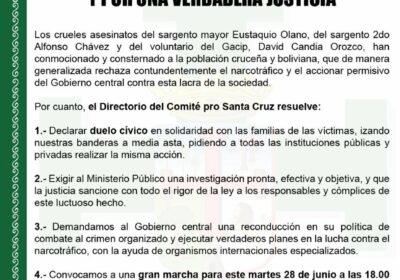| El Comité Pro Santa Cruz convoca a una marcha para este martes para pedir…