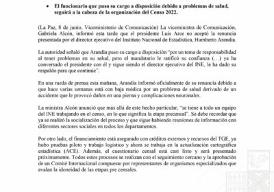 | #Política El presidente Luis Arce no aceptó la renuncia del director del …