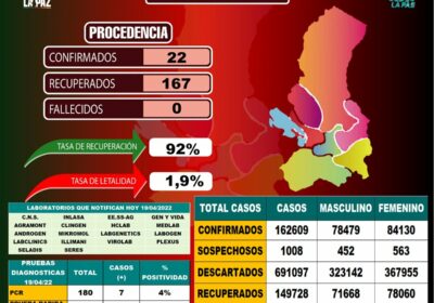| #Salud El Sedes de #LaPaz reporta que este martes se confirmó 22 nuevos c…