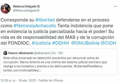 | #Política La exdiputada @RebecaDelgadoB afirmó que corresponde que Marco…