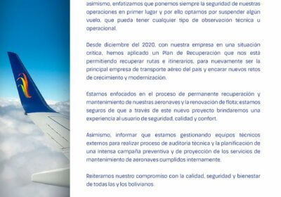 | Ante las últimas denuncias, la aerolínea estatal @BoABolivia comunica qu…